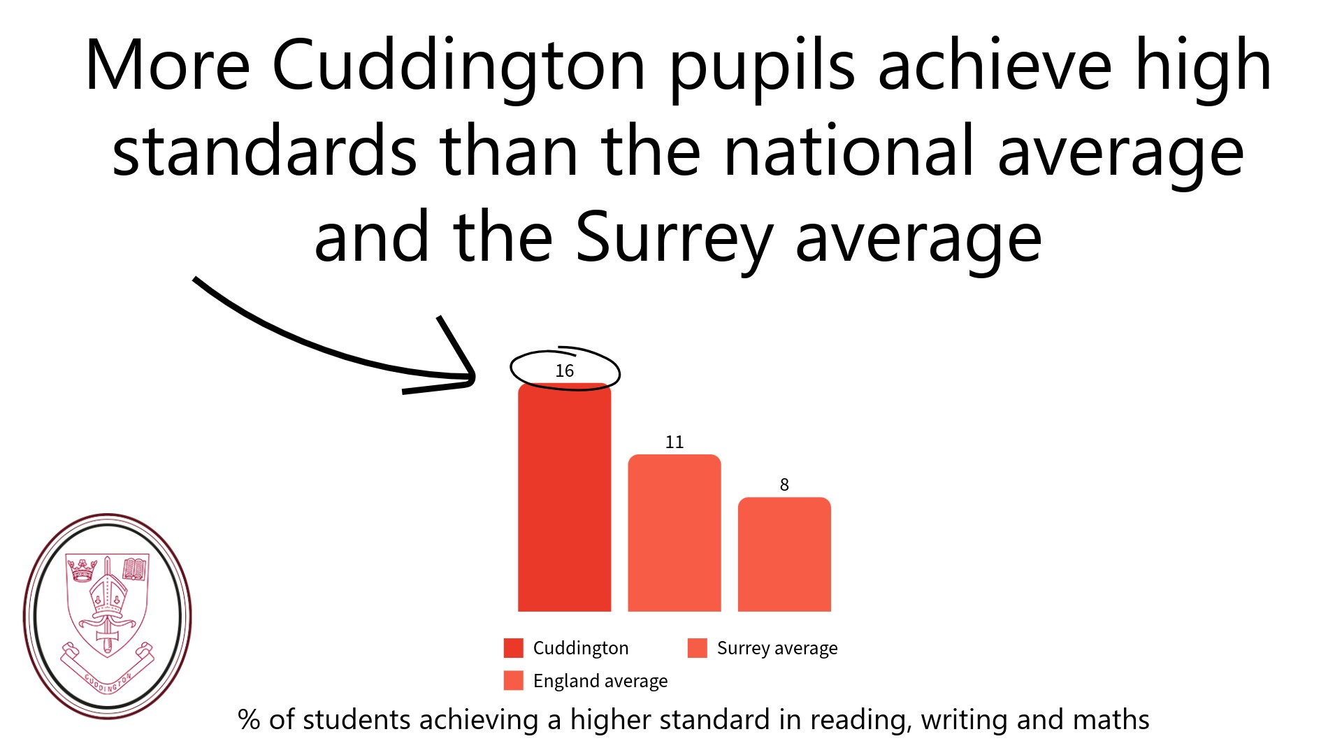More Cuddington pupils achieve a high standard than the national average and the Surrey average
